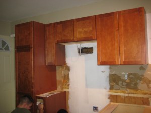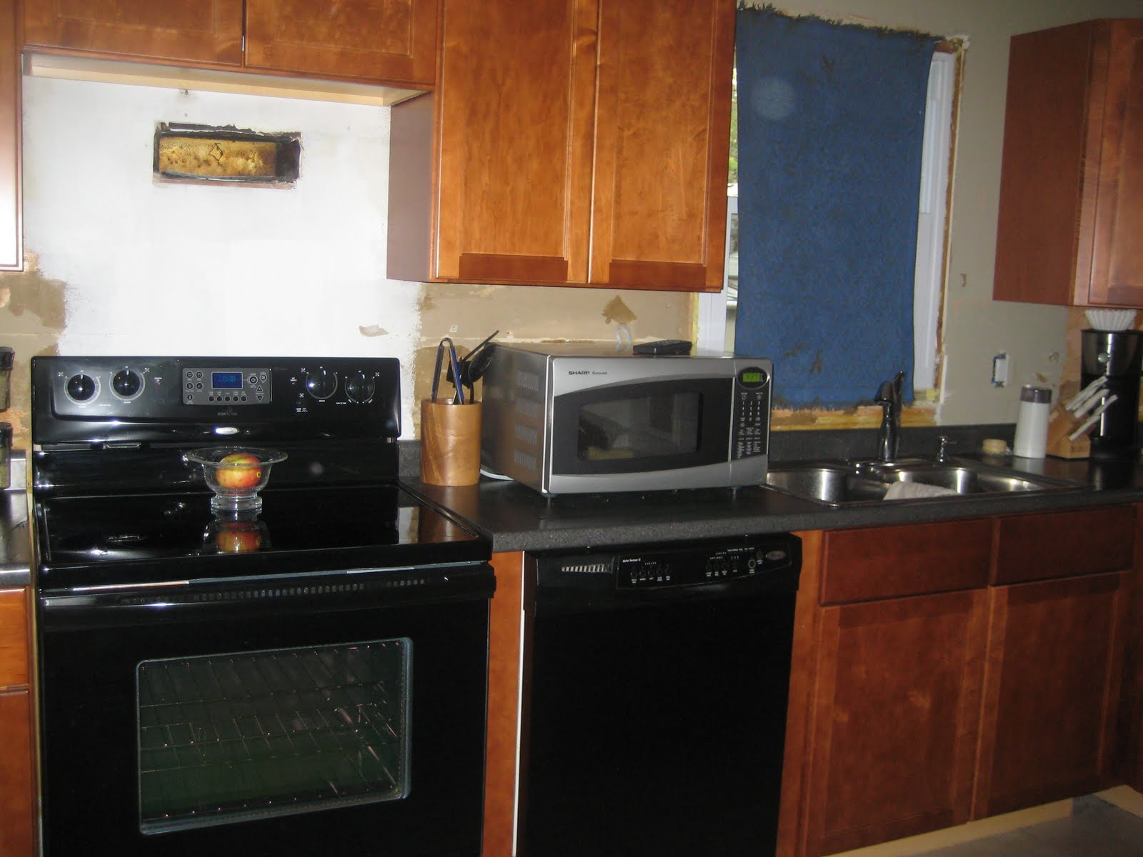 Well, it’s been awhile since I’ve sat in this chair to blog, but life has been nothing short of chaotic lately. While we are about 3 weeks (or is it 4 now?) into our adventurous kitchen remodel, it’s felt more like a move around here. While I am enjoying the finer things of life now with an oven that has a handle and sink with a garbage disposal that works (or will once Mike hooks it up) it’s hard it even remember the kitchen that I dreaded seeing everyday for the past 5 years. With new cabinets, new floors, new paint…I can’t say I miss the mold and mildew that used to lurk under my sink before, and the musty smell of the nicotine soaked cabinets. Before Mike started to tear apart every ounce that was the before kitchen, Tanner and I packed our bags and skipped town to Chicago, so as not to be in the way of course. I would have loved to stay and help we all know that. With Bob and Jim helping Mike every step of the way, Tanner and I got to spend some much needed time with his cousin, Caiden. Without knowing when we would be able to return home, we waited for the okay from Mike to come on home…but must sleep at my mom’s. Hmmm, I wasn’t sure after those couple of weeks of playing musical beds, that Tanner would even feel comfortable in his own environment again. Living out of our suitcase, even once we were home, and occassionally a plastic grocery bag for our overnighters at mom’s, it was quite weird to feel as though I was doing the walk of shame every morning when leaving my own mother’s house. Both of us in pajamas, looking homeless, then returning the next evening with another plastic bag that hopefully didn’t have a hole in it, holding some clean undergarmets and a diaper or two for the little guy, maybe a tooth brush if I remembered. Anyways, we’ve now been “living” at home now for awhile, and I must say I think that Tanner is getting used to the fact and actually quite likes eating his meal on the stairs..on the floor. I’ve since lost an array of kitchen utensils that I remember packing, but Mike doesn’t remember putting away. For now I will measure out my cups and teaspoons like they did in the old days, eyeballing it. As for all the work the boys’ put in trying to give us a functional kitchen, they’ve done a fabulous job pretty much all on their own. They ripped out the cabinets, sink, countertops, stove, oven, subfloor. They hung the new cabinets, put in the countertop, a new sub floor, and repainted the walls and after Bob and Jim left, Mike laid the tile for the floor and hooked up the sink, which only took him 3 day, which I am amazed by considering his lack of plumber abilities. Yes, they have worked so hard on this kitchen, and I love spending time in it. I’m sure Mike will feel the same way once he takes out the grout in between the tiles and redoes it (whoops, you can’t have all your cake and eat it too). I am lucky to have a very handy guy for a husband. He’s never done any of this kind of construction work before we moved into this house, and has taught himself along the way to do it all. Kudos for my husband and his harworking dad and bro to fix the unfixable. We are going to be able to enjoy our new kitchen for many months to come.