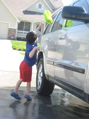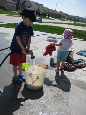Saturday was car washing day, aka “just another photo opp of the kids” day for me.  Here are some funny photos of the 2 of them trying to help…