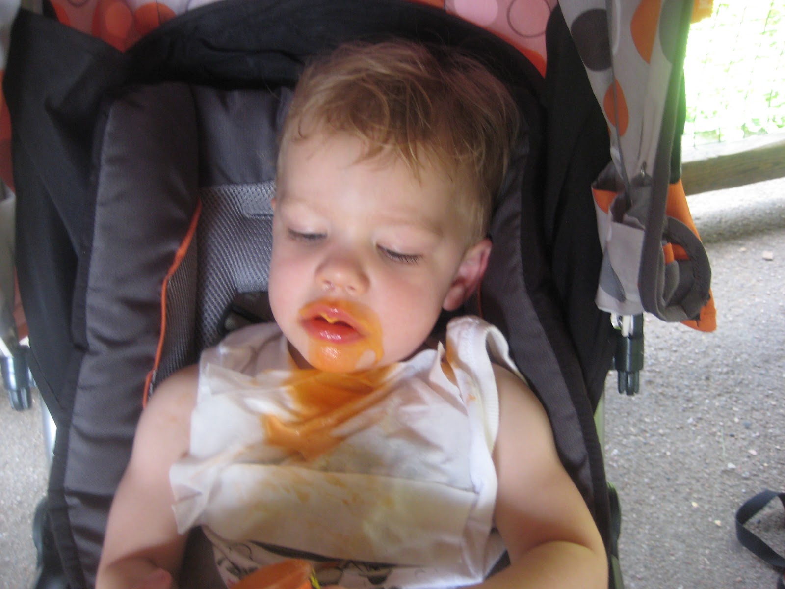 Today we went to the zoo to celebrate our last 90 degree day(probably) for a while.  The kids walked the whole time and are sleeping like babies.  It may take an hour to get out of the house, 20 min to get the stroller out, everyone loaded up, and sunscreen on, but it was all worth it because the carosel was open, we had ice cream and only 1 melt down/kid and it wasn’t until we were on our way back to the car.  Today was pretty much a piece of cake…well so far at least.